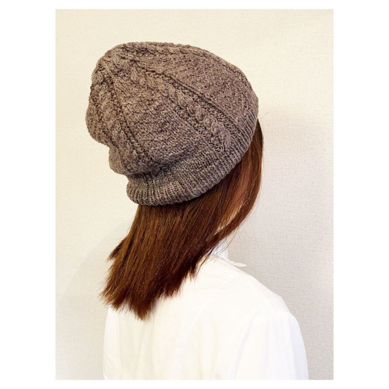 ざくろで染めた毛糸で編んだ帽子です。