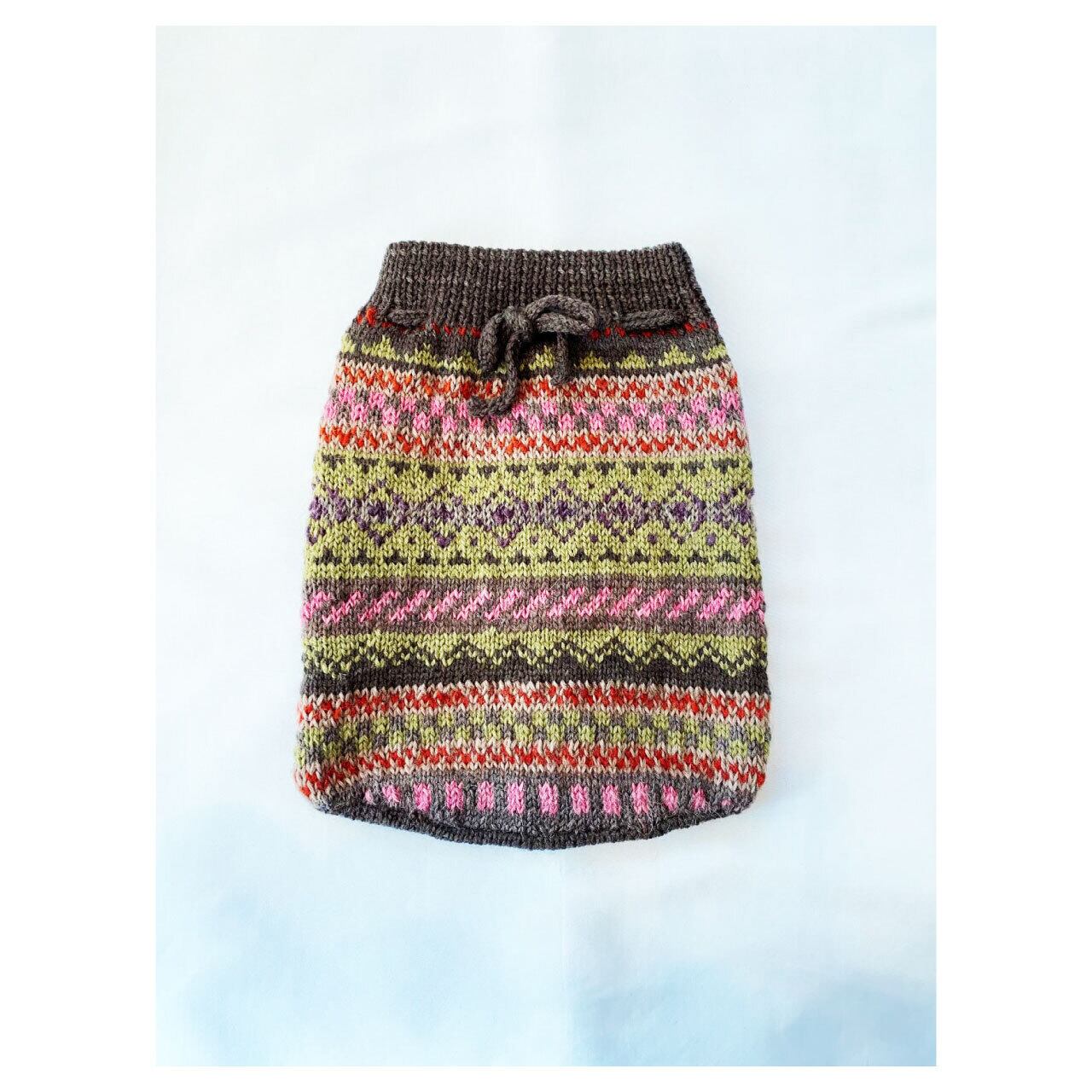 草木染(よもぎ、コチニール、ざくろなど)で染めた糸を使って手編みした湯たんぽカバーです。