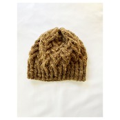 栗で染めた原毛を手紡ぎした毛糸で編んだ交差模様の帽子